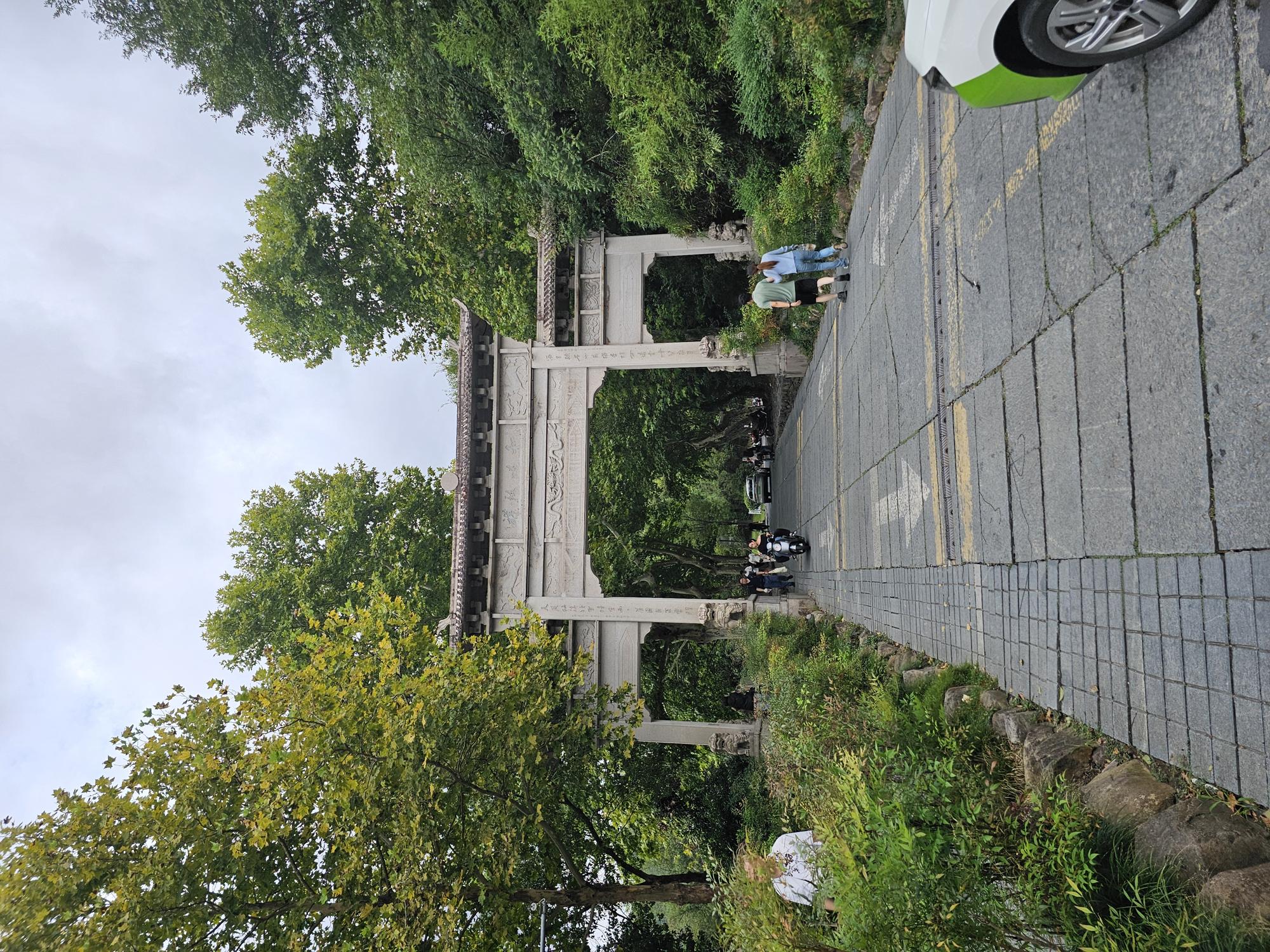 可就在抵达景区门口、准备核验入园时,意外却悄然而至——同行的三位伙伴竟忘了将身份证带在身上。这小小的疏忽让原本顺畅的行程顿了顿,大家面面相觑片刻,随即还是年轻、能干、任劳任怨的金南陪着忘带证件的同行者再乘摆渡车返回停车场取物,我们其余人则留在门口等候,打趣地谈论着每每旅游时一些同行人丢三落四的趣闻。约莫半小时后,取证件的伙伴们匆匆赶回,脸上带着些许歉意,却也被这来回的奔波逗得发笑:“这趟‘折返跑’,倒先让我们体验了两回摆渡车的风景!”
