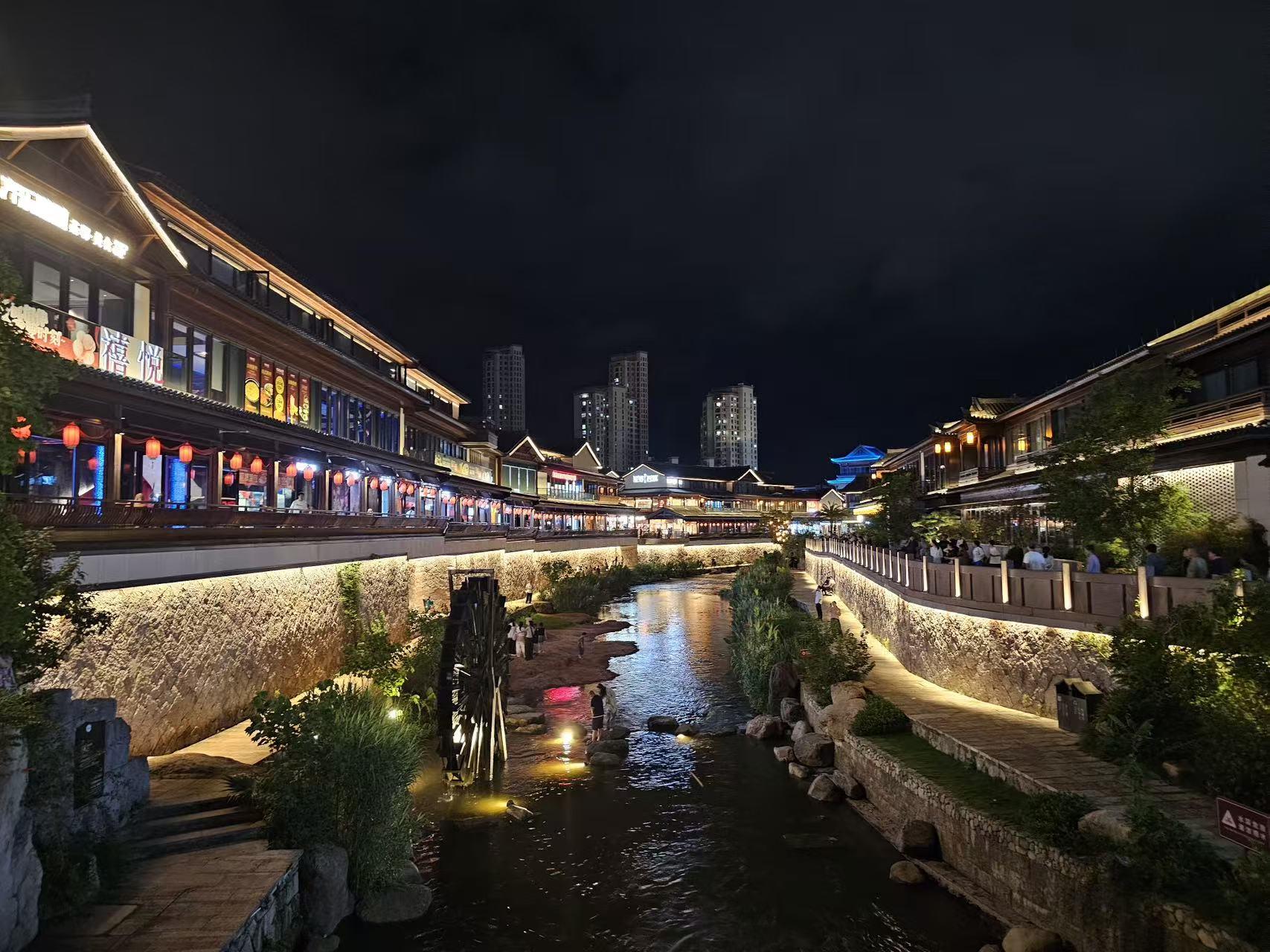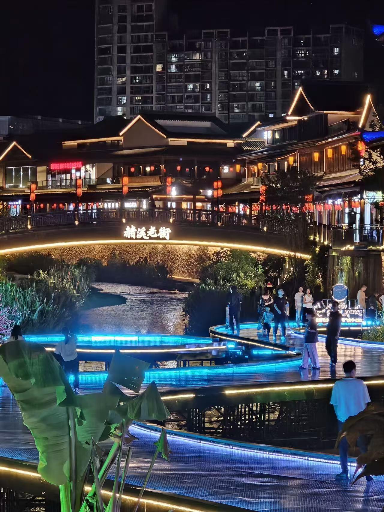 晚风又起时,溪水里的光晃了晃,竟分不清是星光落进了溪里,还是溪水飞上了夜空。原来不必追着名山胜水,一条老街,一溪灯火,便藏着最动人的夜色。