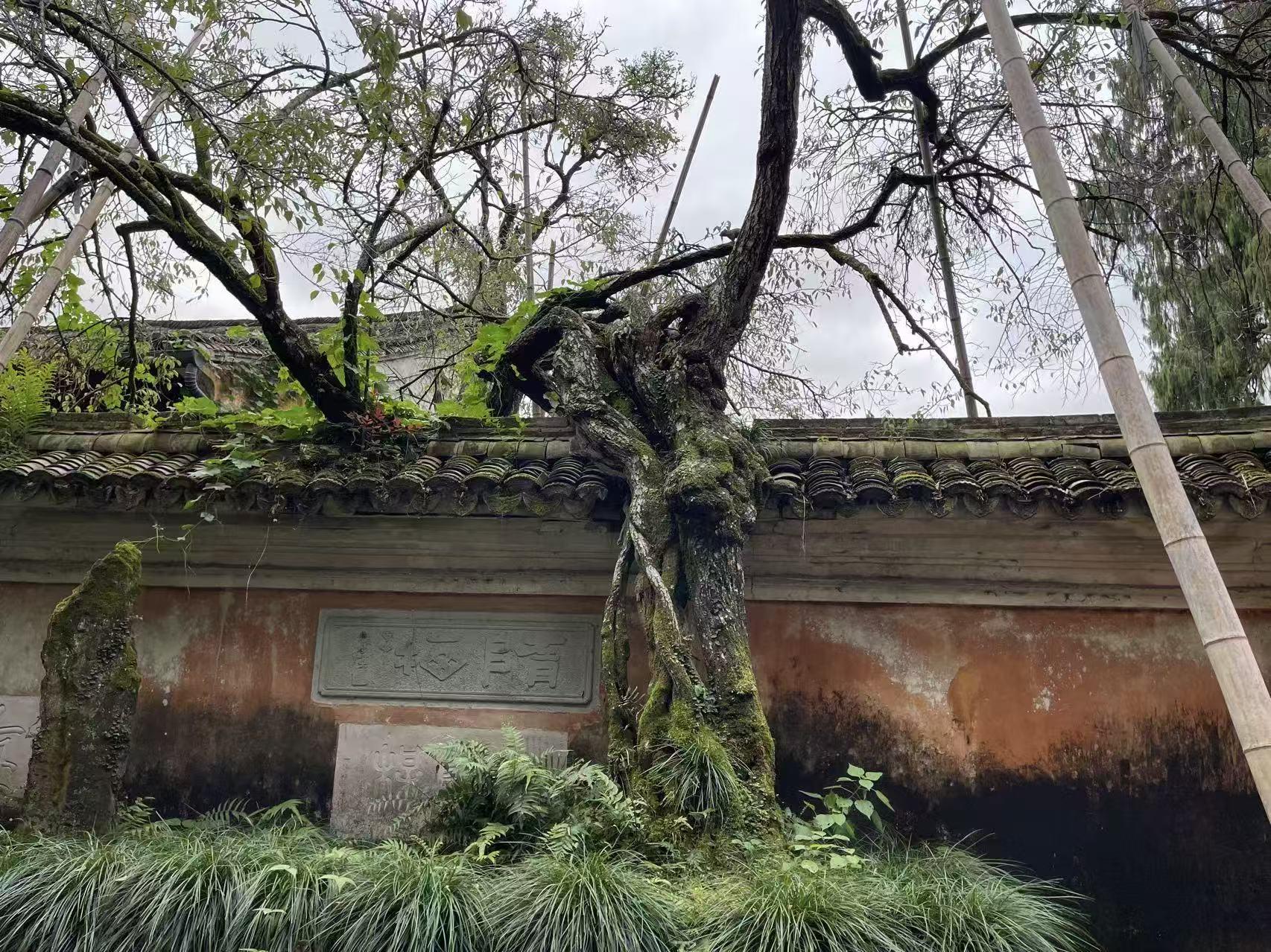 进了寺门,雨已经停了。放生池里的锦鲤在碧波中悠游,池边的隋梅虽未到花期,虬结的枝干却透着苍劲。拾级而上,飞檐下的铜铃在微风中轻响,大雄宝殿的香火气息与雨后的清新交融,让人瞬间静下心来。同行的一些人对着殿内佛像虔诚参拜,一些人则拿着手机记录角落的景致:千年银杏的盘曲根系、碑刻上模糊的字迹、僧人缓步走过的身影。最惊喜的是寺后的茶园,新抽的茶芽沾着水珠,青绿可人,听说这便是有名的“天台云雾茶”的产地,站在茶园边远眺,远山如黛,云雾缭绕,倒有了几分神仙居的意境。